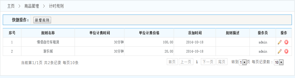 規(guī)則列表:展示系統內設置的所有的規(guī)則 (操作一欄 可以對每條規(guī)則進行修改和刪除 )