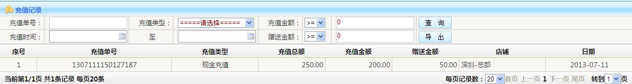 1.查詢:可以根據(jù)充值單號 時間段 充值類型等條件查詢