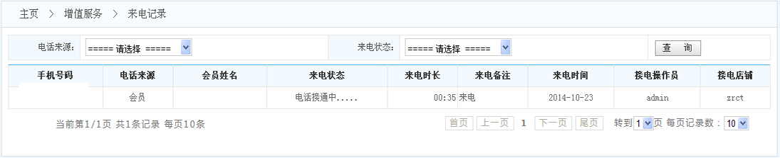 2.查詢:按照條件查詢出來電彈屏的記錄數(shù)據(jù)(例如 根據(jù)電話來源